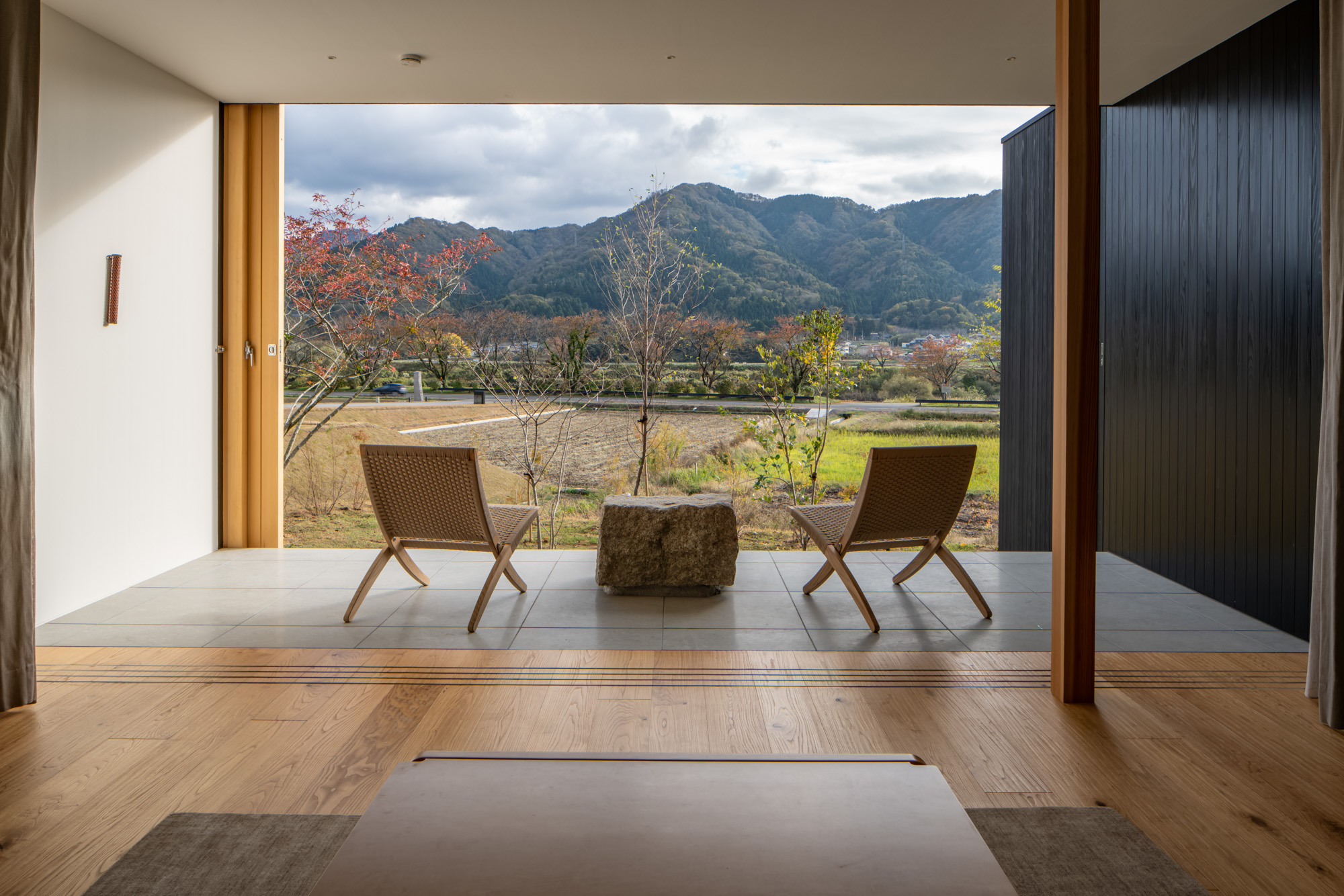 A gorgeous retreat set across the grassy knolls of Eiheiji, Kanshukuen ESHIKOTO is a tribute to the local land and Japan’s sacred libation: sake. The philosophy here is a modern interpretation of dotoku, emphasizing the idea of “merging with the original landscape.” Each building utilizes traditional Fukui materials, such as local shakudani stone, to harmonize with the topography. Anchored by the Kuzuryu River (the source of the region's water and seasonal ayu sweetfish), this stay is an exemplar of modern architecture in harmonious dialogue with its environment.